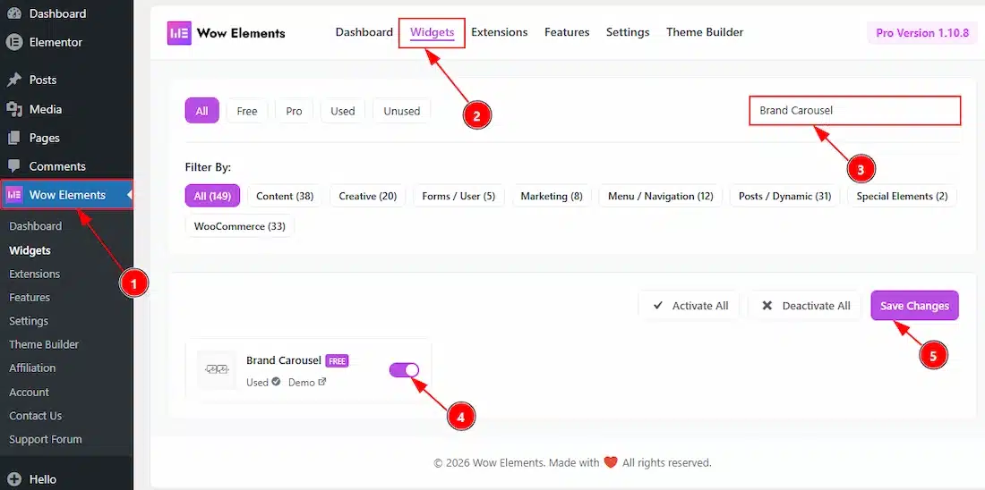 To use the Brand Carousel widget from Wow Elements, first, you have to enable the widget.