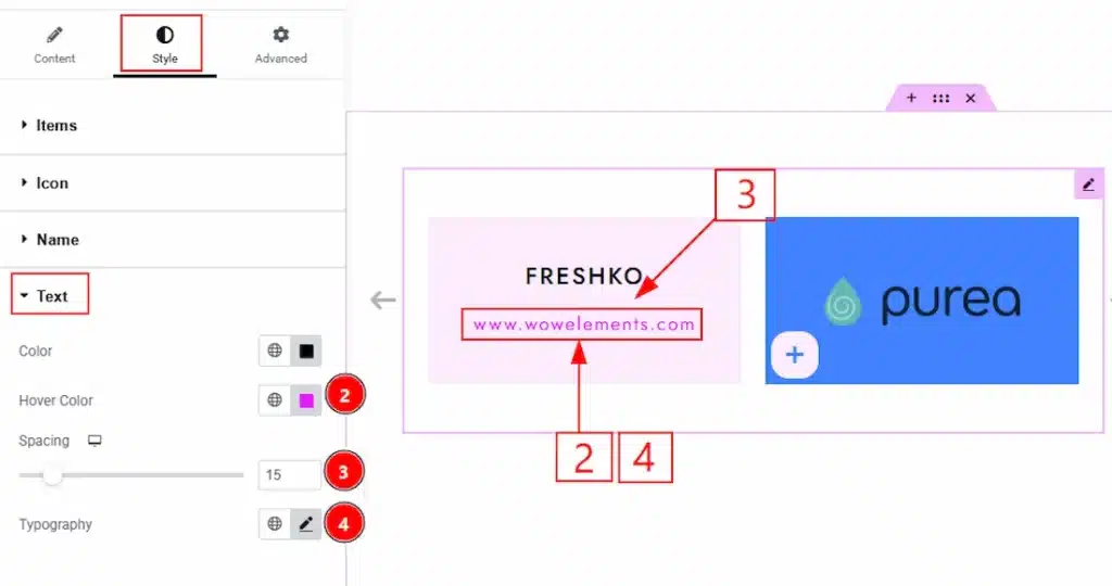 2. Hover Color: You can make changes to the text hover color with this option.
