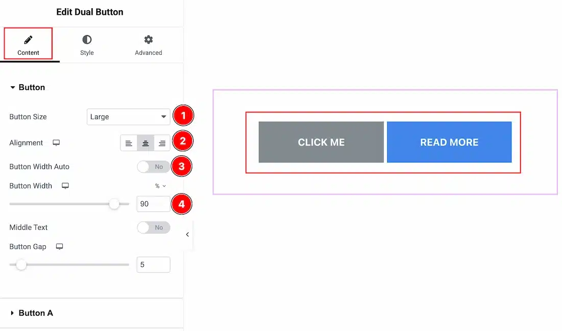 3. Button Width Auto: Enable the switcher to set the button width automatically.