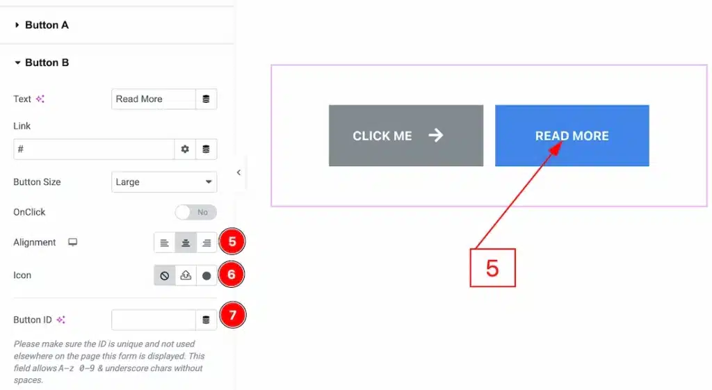 7. Button ID: You can add a button ID to the button with this option.